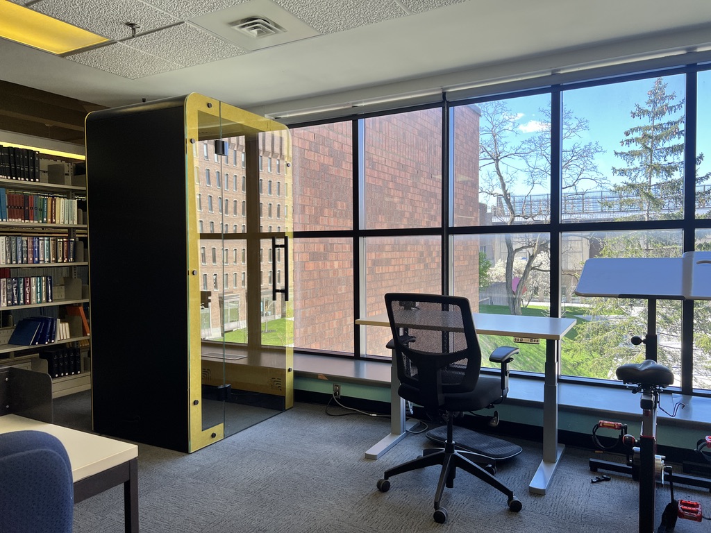 Réparties dans trois zones de la bibliothèque, les six cabines SOLO offrent des espaces d’étude isolés, certaines donnant sur une belle vue.
