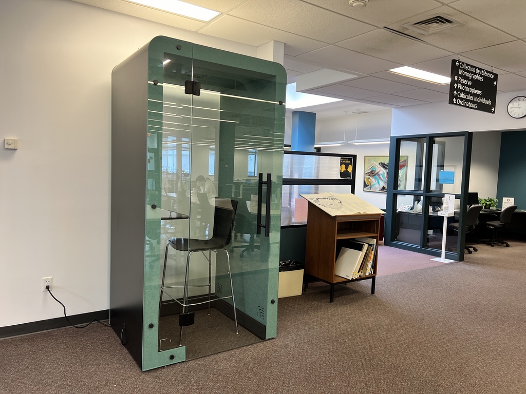 La cabine DUO permet un espace collaboratif dans un bâtiment qui manque des salles privées. Le plus? Elle peut être démontée et réinstallée au besoin.