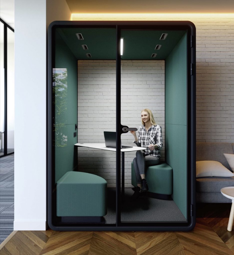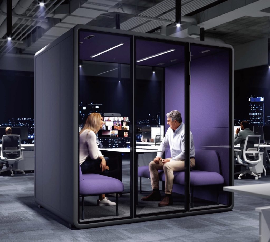 Une cabine acoustique pour chaque besoin : bureau personnel, cabine individuelle ou pour petit groupe de 2 à 8 personnes, et accessibles à tous.