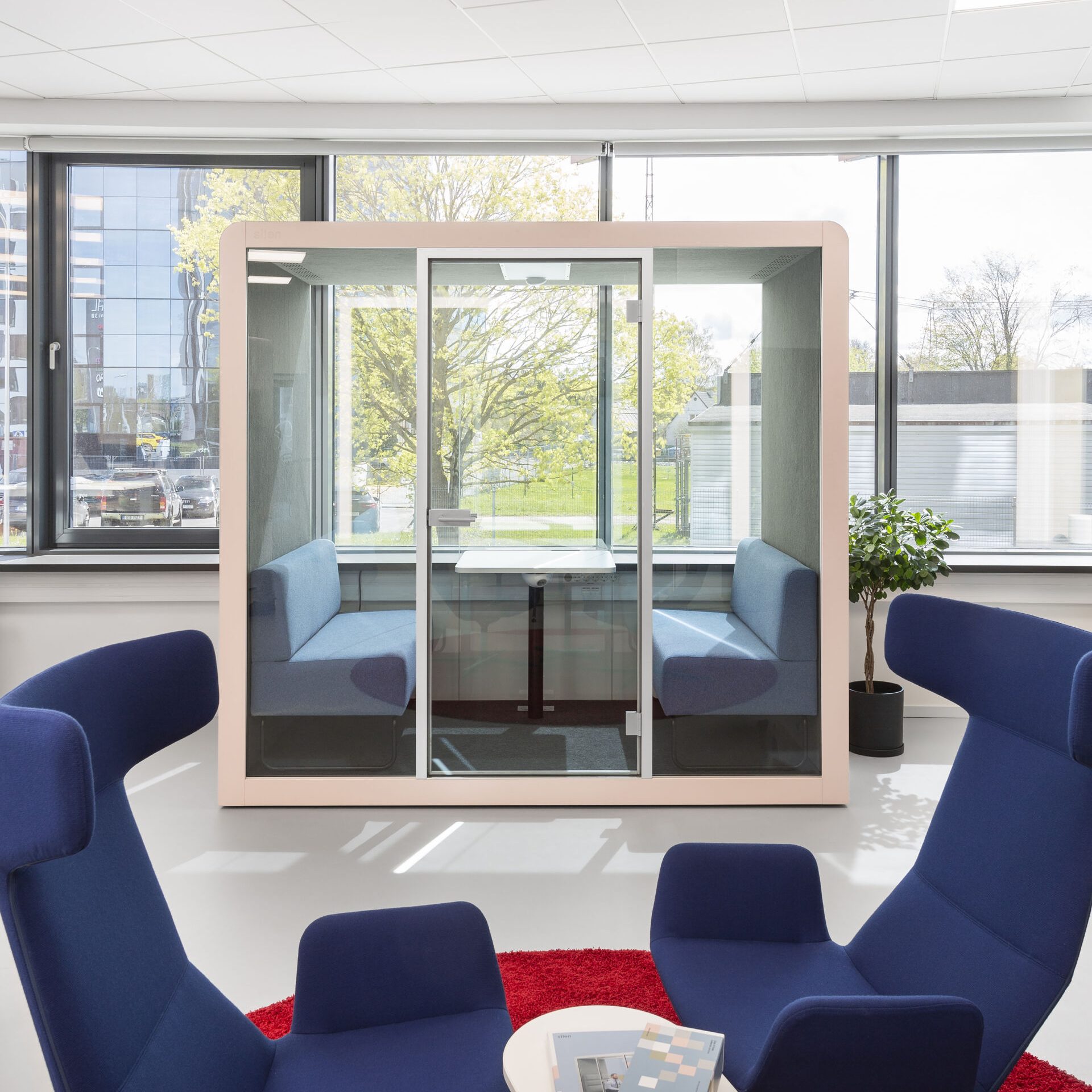 La salle de réunion DUO offre plus de confort et de liberté que les autres cabines pour deux. Avec ses deux sofas confortables, elle transforme instantanément n’importe quel coin en espace privé, idéal pour réunions face-à-face, travail ou moments de concentration.